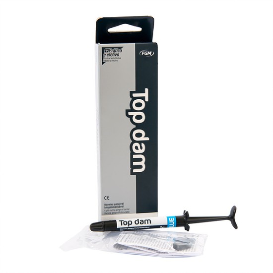 A Barreira Gengival Top Dam FGM é uma resina fotopolimerizável, indicada para a proteção do tecido gengival de seus pacientes, durante a realização de clareamento dental de consultório com peróxido de hidrogênio a 35%. Também é indicada como auxiliar de vedação no isolamento absoluto.