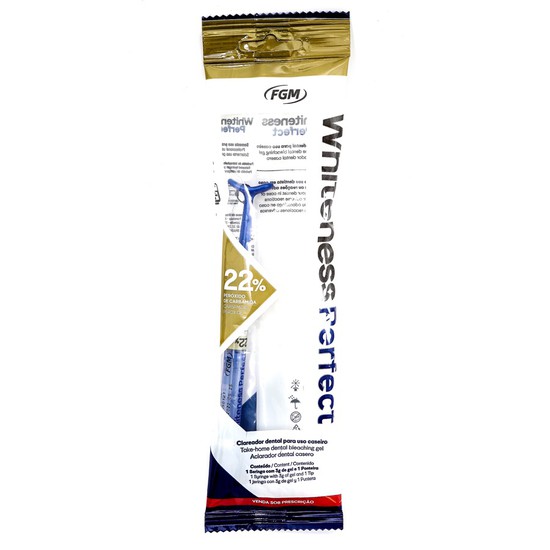 Com excelente viscosidade e nitrato de potássio e fluoreto de sódio como agentes dessensibilizantes, o Whiteness Perfect é um clareador dental à base de peróxido de carbamida a 22% com bom rendimento.