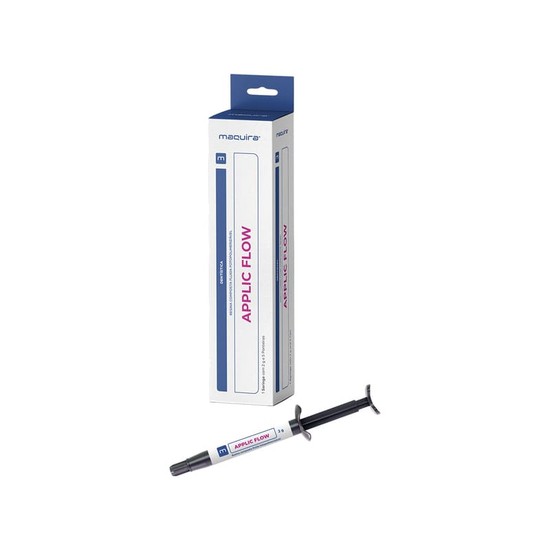 A Resina Applic Flow é uma resina composta fluida fotopolimerizável, constituída de compósito microhíbrido e estético destinado à restauração de dentes anteriores e posteriores. O uso de monômeros metracílicos, silanos e cargas com adequada distribuição de tamanho de partículas são combinados para fornecer um produto com propriedades físicas, mecânicas e óticas satisfatórias para o profissional.